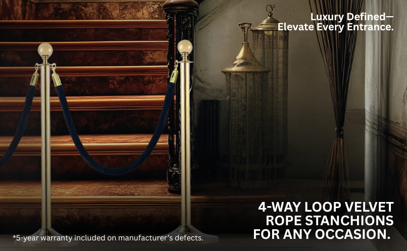 Velvet rope stanchions and posts feature a 4-way loop that enables crowd control from any direction. Red carpet rope barriers and bollards are commonly chosen for commercial events, ceremonies, business conferences, and promotional activities.