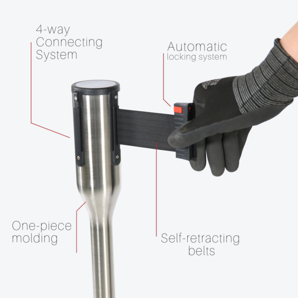 Goblet: Stackable Retractable Belt Stanchion CAE-335 is designed for heavy-duty crowd control applications.