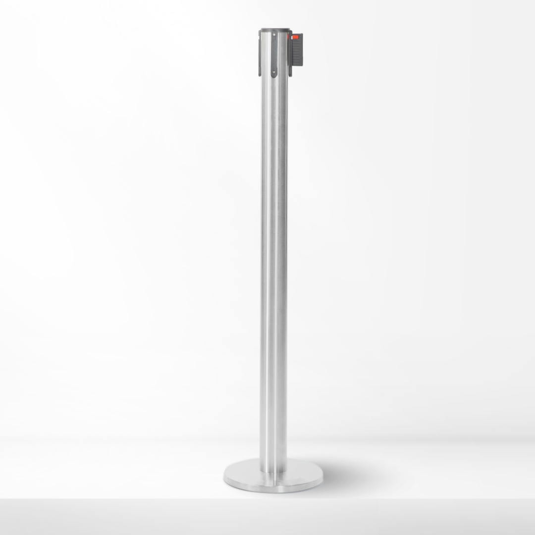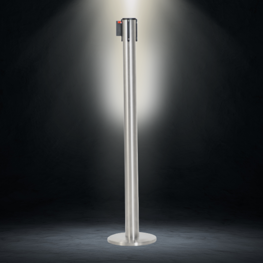 • Magnetic post connects instantly to the steel plate, keeping the queue in place.